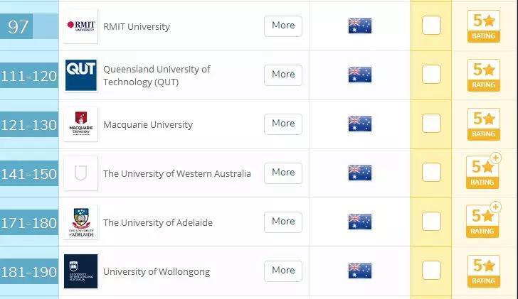 世界101-200名澳洲占据5个,可见澳洲的教育水平极高,同时毕业生在同届也具有强有力的竞争力,分别是昆士兰科技大学、麦考瑞大学、西澳大学、阿德莱德大学、伍伦贡大学。
