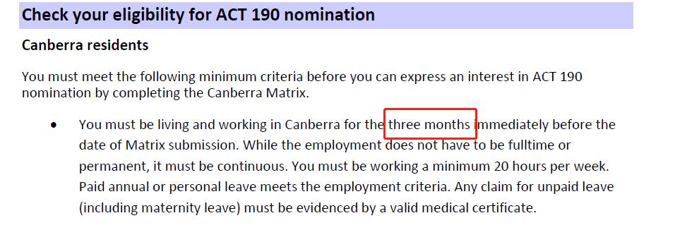 递交之前在堪培拉的居住和工作时间,从1年改为3个月!从7月1日正式实施!