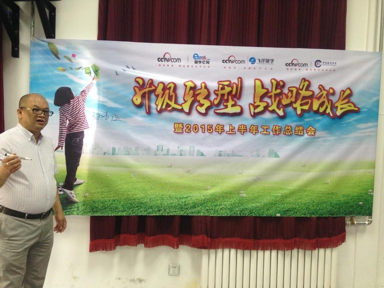 7月12日上半年工作总结会,华智飞洋高级副总裁王涛先生针对合作办学事业部工作进行报告,王总总结了该事业部半年来取得的优异成绩,半年内几乎完成全年的任务,并对本年度整体业绩做出惊人估算。李德刚总经理,丁惠彩总经理分别对出国留学事业部、艾德沃早教事业部现状做整体总结,并对下一步工作做总体规划。包括经营目标,重点工作等。最后,华智飞洋总裁孙查理先生作重要发言,表达了对华智教育未来发展的期许。