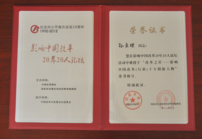 2012年,孙查理先生获评“改革之星——影响中国改革(行业)十大创新人物”。